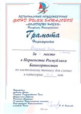 Победителями соревнований среди учащихся с 7 до 11 лет стали учащиеся ГБОУ Белебеевская КШ для слабовидящих обучающихся у мальчиков Кирьянов Илья (1 место), Кадыров Ильяс (2 место), Борисов Дмитрий (3 место), среди девочек 7-11 лет – Алексеева Арина (2 место), Ефремова Эвелина (3 место). В командном первенстве участвовали Кадыров Ильяс, Алексеева Арина, Кирьянов Илья и выиграли 1 место. Все участники награждены ценными подарками, грамотами и кубками.